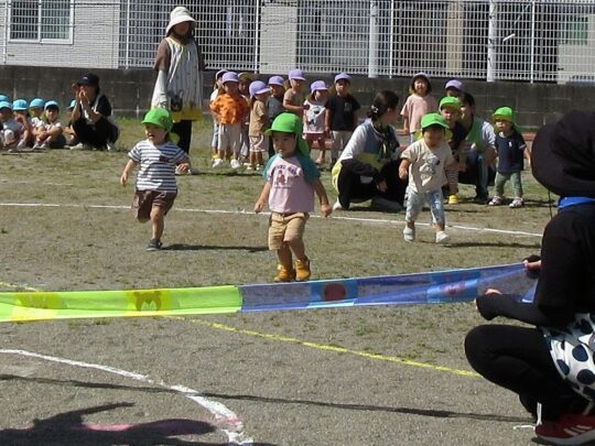 1歳児・りす組のお友だちは、24日(水)の予行練習で、運動会ごっこをします。