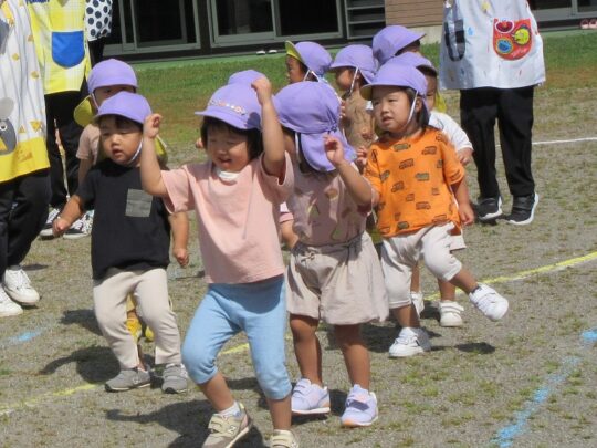 2歳児・あひる組のお友だちは、初めての運動会ですね。