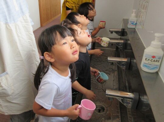 ブクブクうがいと、ガラガラうがい、どちらもじょうずにできるかな?
