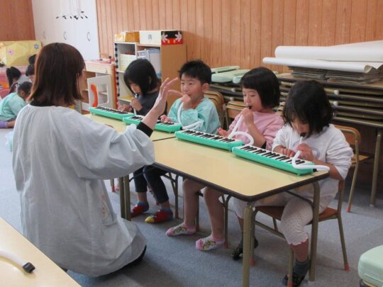 4歳児・ぱんだ組のお友だちが、鍵盤ハーモニカに初挑戦。