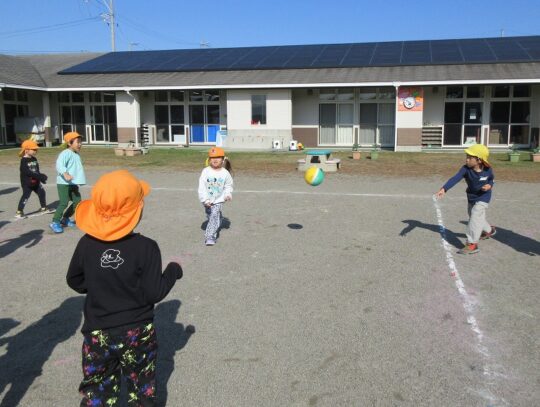 5歳児。きりん組のおともだちは、みんなで、ドッジボール。