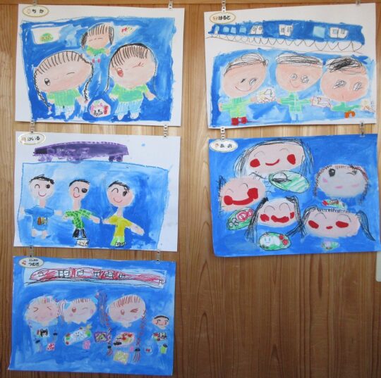 お弁当を食べている時に、電車が通って行くのがよく見えたよ。
