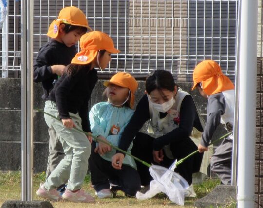 柔らかな日差しが降り注ぐ、秋のひとときを、園庭に出て、思い思いに遊ぶ子どもたち。
