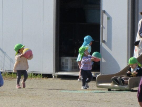 1歳児・りす組のおともだちも、ボール遊びをするのかな?
