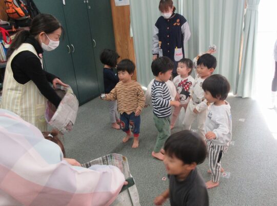だんだんと楽しくなって、どんどん投げる、2歳児・あひる組のお友だちでした。