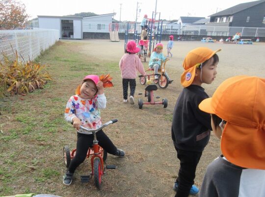 冬の到来を感じさせる、風の強い日。園児は、負けずに外遊びを楽しんでいました。