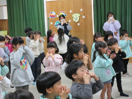 2025.12.12 点灯式(3) SNOW FLAKEのダンスをおどりました。 穏やかな曲調にあわせて、雪のひとひらが、私の頭に、鼻に、手のひらに降りかかる・・・というしぐさをします。 もうすぐクリスマス、という気分が高まりました。