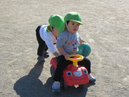 あしこぎぐるまのおともだちを、うしろから助けてくれています。