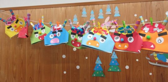 2歳児・あひる組のお部屋で、出番を待つお面です。