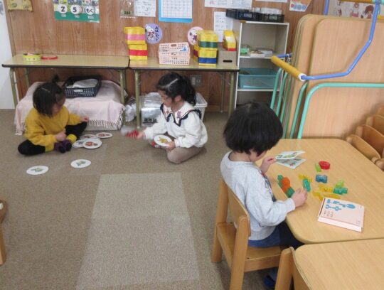 そのうしろでは、なかよくカードゲームを楽しむお友だちがいます。