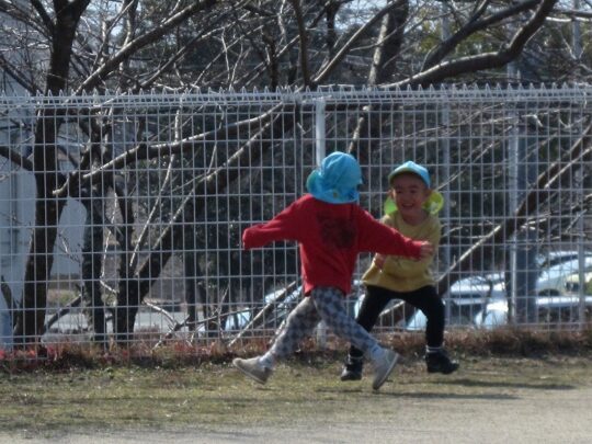 気温が少し上がると、園庭での子どもたちの動きも、軽やかになります。