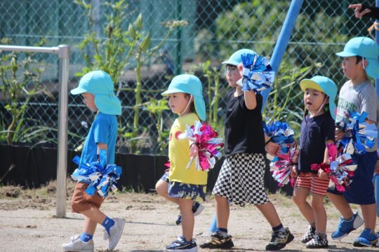 2025.09.9 さあ、行進!! 3歳児うさぎ組さんは、今年から運動会に本格デビュー。 ダンスに、かけっこ、親子競技。 今日も暑かったけれど、少しだけ外で練習をしました。 みんな張り切って、かっこいい入場行進が始まりました。
