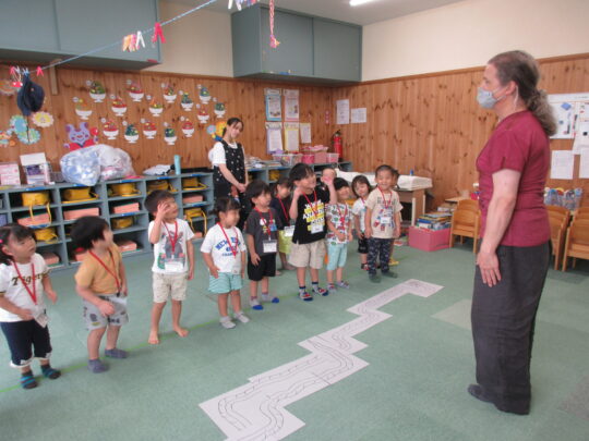 うさぎ組の子どもたちも英語活動に慣れてきて、ジャスティン先生に会えるのを楽しみにしていました。