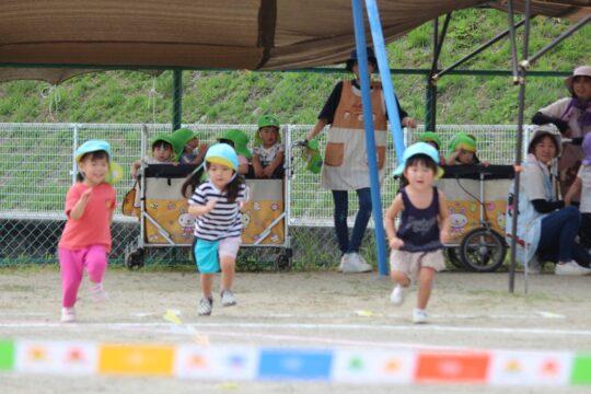 2025.09.19 よーいドン 1 今日は、運動会の練習をいっぱいしました。 開閉式の練習や、かけっこ。 お友だちや先生、みんなが応援してくれるから とってもがんばっています。 写真はかけっこの様子です。「よーい、ドン」