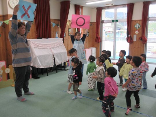 うさぎ組さんの〇✕ゲームの様子です。