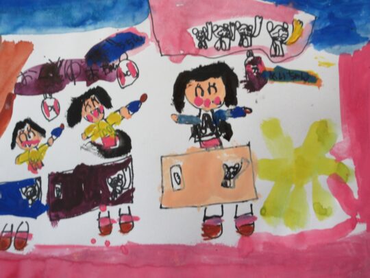 おかげ横丁での「招き猫の絵付け体験」の様子です。