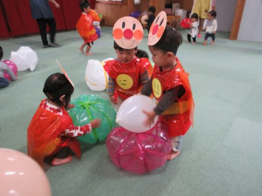 ひよこ組さんとりす組さんが、一緒に風船遊び。