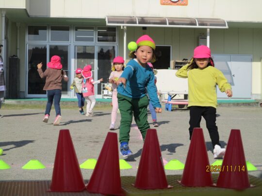 ぱんだ組さんは、小さなボールを投げるのが、とっても上手になりました。