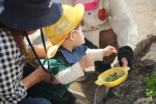 園では、食育の一環で春は苗から、冬は種から野菜を育てています。