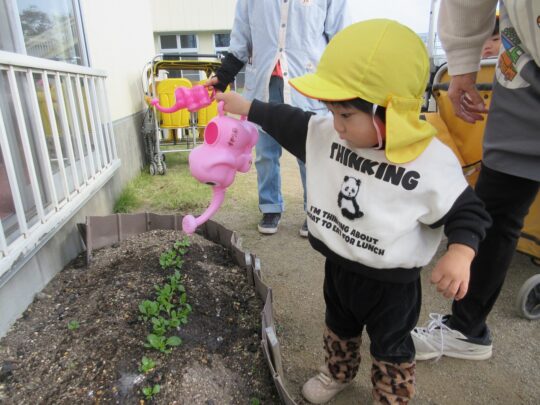 ぞうさんジョーロで水やり。