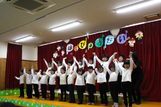 きりん組さんの最後の演目は、手話ソング「手をつなごう」