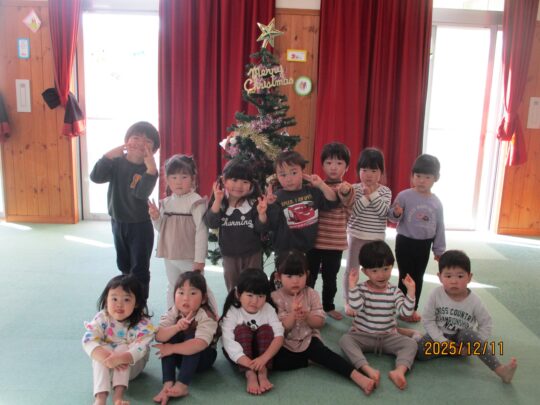 2025.12.11 クリスマスツリーの飾り付け クリスマスに向けて、クリスマスツリーの飾り付けが始まりました。 一番にやってきたのは、あひる組さん。一人一人、お気に入りのオーナメントを飾り付けました。 とっても素敵にできました。