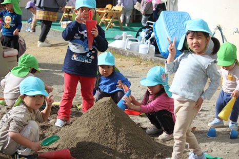 先生にも教えてもらいながら、大きなお山を完成させました。
