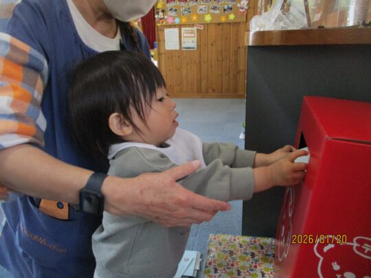 0歳児ひよこ組さんの子どもたちがお手紙を書きました。