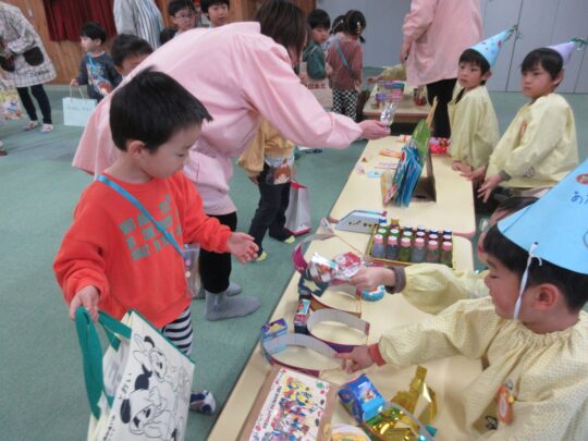 2026.02.14 店屋さんごっこ 今年のお店は、「くじびきやさん」「スイーツやさん」「アクセサリーやさん」 うさぎ組の子どもたちは、自由にお店を回ります。 くじびきやさんではあたりが出ると、豪華賞品の中からすきな品物をもらえます。 「何にしようか」迷ってしまいますね。