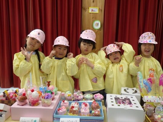 2026.02.14 「スイーツ屋さん」にようこそ 「これって本物?」思わず聞きたくなるスイーツばかり。 チョコバナナ、ショートケーキ、ジュース、アイスクリーム、ホールケーキなど。 小さな子どもたちに大人気でした。