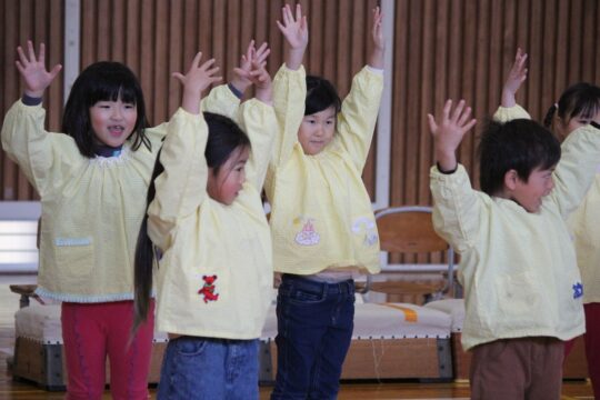 2026.02.18 1年生との交流会 ② はじめは、みややま保育園の子どもたちの歌の発表です。 園歌と「これもいいね」を振り付きで聞いてもらいました。 1年生の皆さんからは、国語の教科書に載っている「くじらぐも」の音楽劇。 きっと子どもたちは、小学校で勉強するのが楽しみになったことでしょう。
