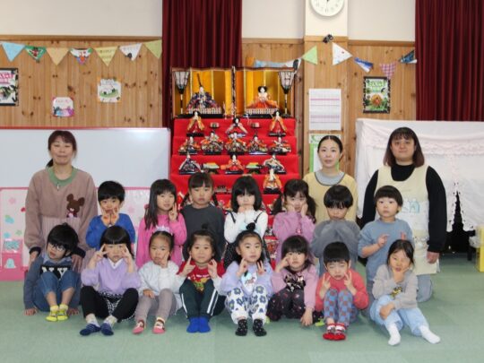 ぱんだ組の子どもたちも、おひな様の前で、すまし顔?