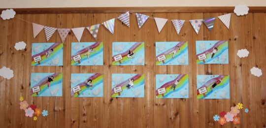 子どもたちが虹をわたって、次はあひる組へ。
