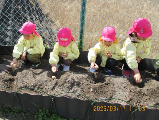ちゃっぴり緊張しながら芋を土の中へ。