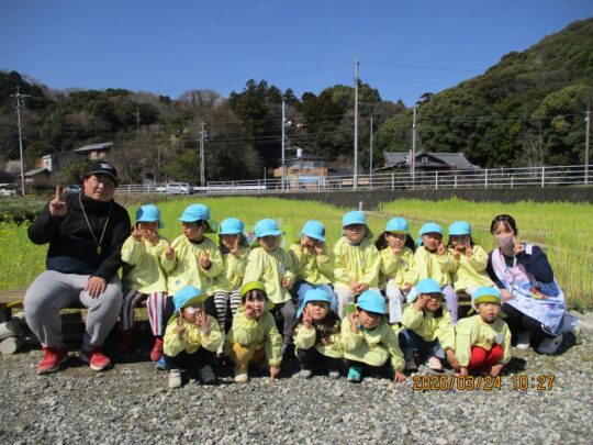 うさぎ組さんは、みんなで菜の花畑まで。