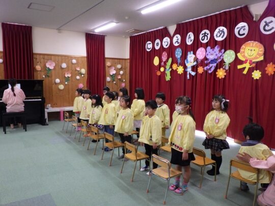 年長児きりん組さんが、歓迎の言葉と歌でお祝いをしてくれました。